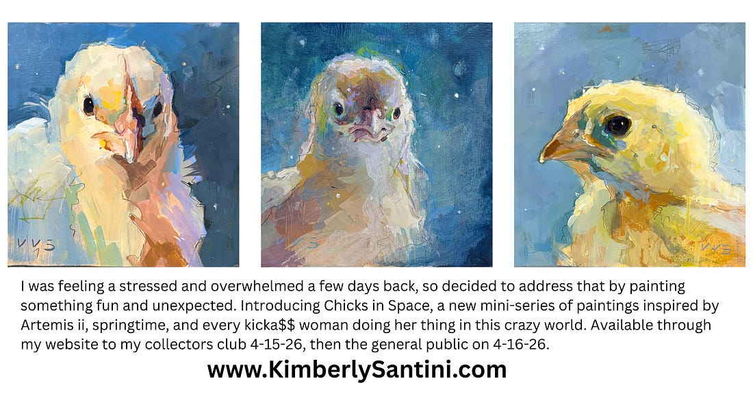 PS Payment plans on request for purchases greater than $500 - 30% non refundable deposit reserves the painting, with 6 months to pay off balance plus any s&h (my current pieces include s&h - paintings done prior to 2026 are at my old prices and s&h is a separate line item). Returning collectors - don’t forget to use “COLLECTOR10” discount at checkout for 10% off acquisitions. Questions can always come my way.